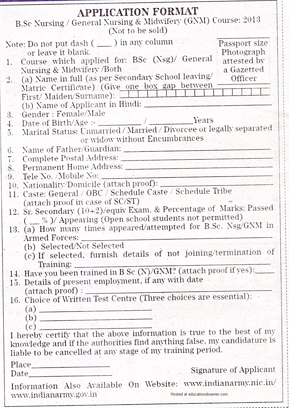 (09-20-2012, 09:20 AM)bijumk Wrote: Indian Army Military Nursing Service Application form for B.Sc. Nursing and GNM (General Nursing and Midwifery) Entrance Examination 2013 for Plus Two candidates.