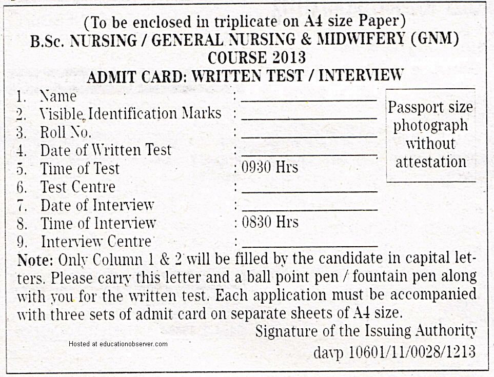 Type the application / admit card format in A4 paper.